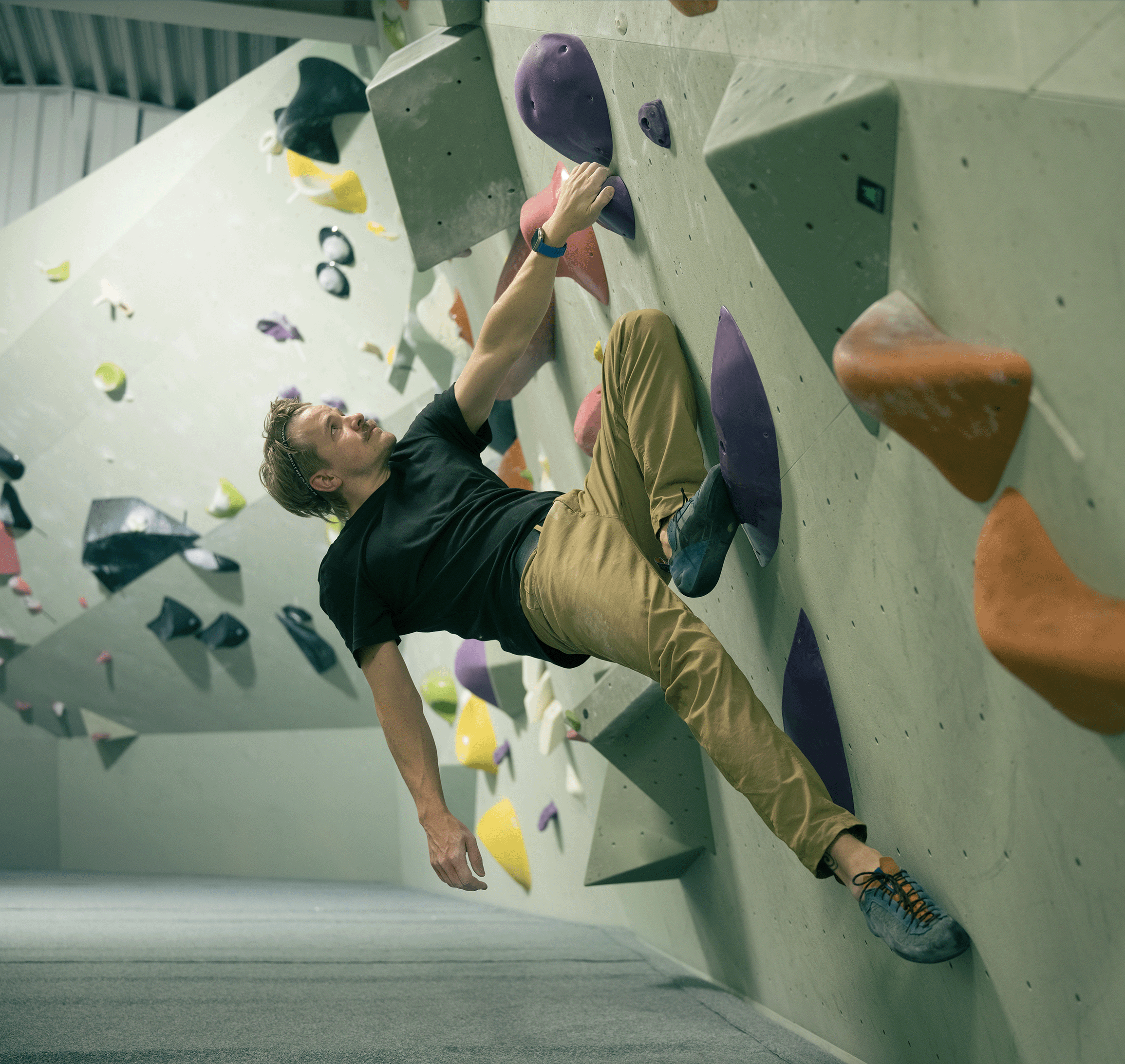 Bouldering and route sessions with structured warm-ups, hangboard sets, and strength blocks.